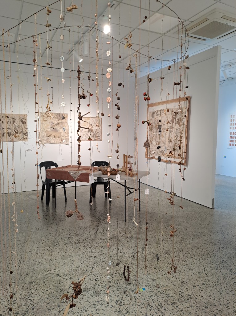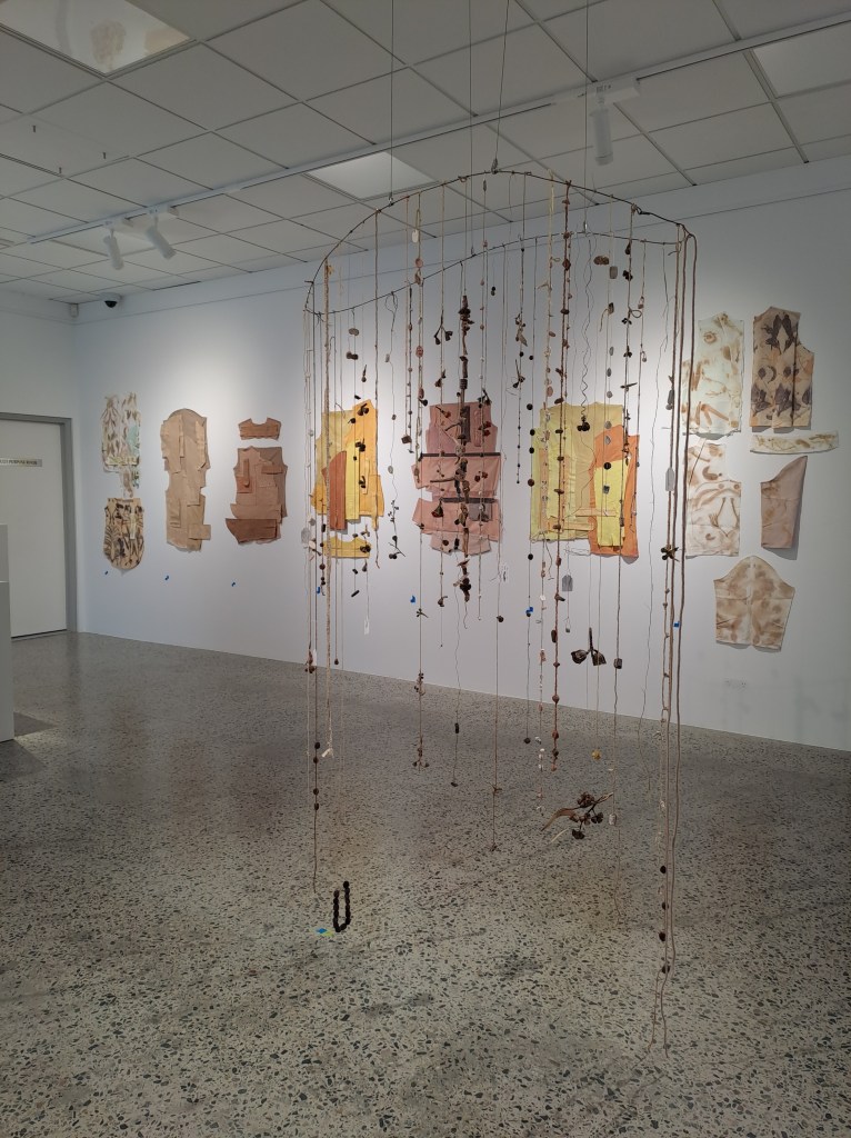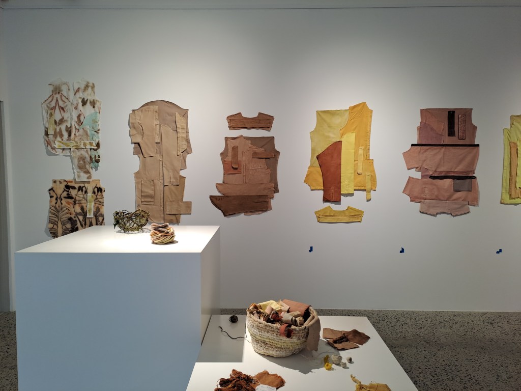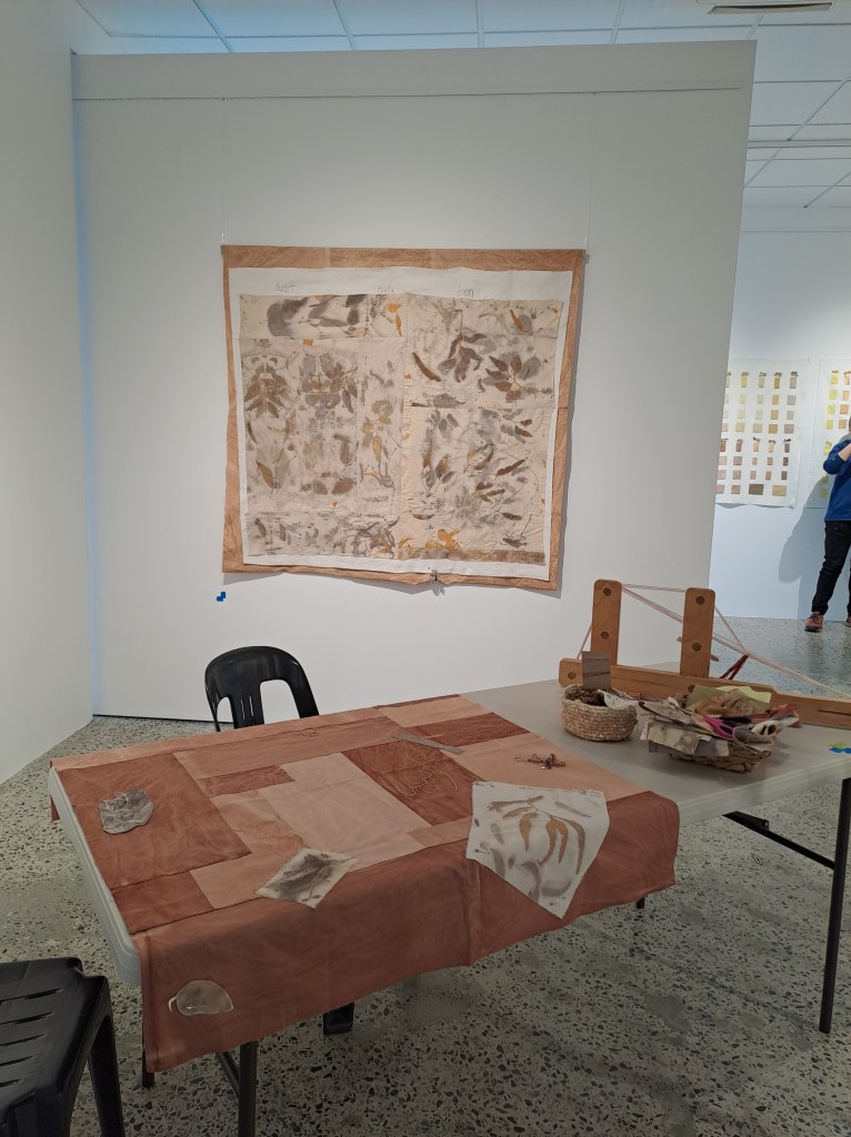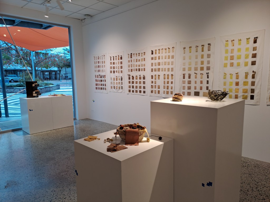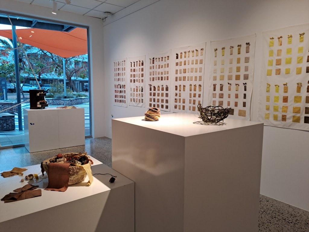 Slow-making Locally exhibition consists of fibre and repurposed textile works which have been stitched, woven, dyed or printed with local plant materials. The exhibition has a strong focus on colours that have been produced from green waste. There is a long history of plant dyeing, botanical printing and basketry that is currently experiencing a revival. These traditional practices of dyeing, printing and basketry are informed by the continuing research into the properties of Western Australian plant species, both native and introduced.